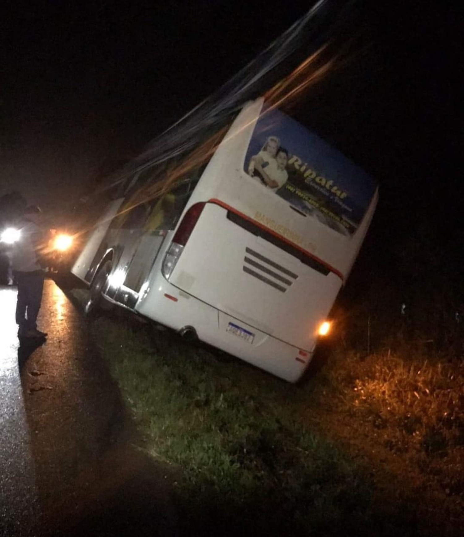 Durante o retorno pela BR 277 logo após passar Guarapuava, devido à forte chuva que caía no momento, o ônibus saiu da pista e desceu por um barranco, ficando parcialmente inclinado e chegando quase a tombar.