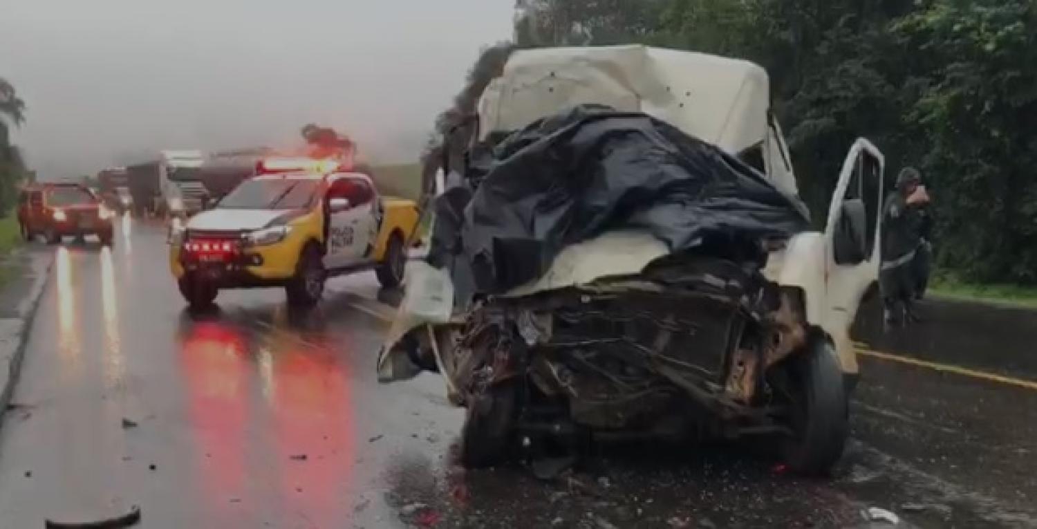 Conforme o motorista do caminhão, ele informou que seguia sentido a Vitorino na terceira faixa, quando o condutor da van entrou para fazer a ultrapassagem.
