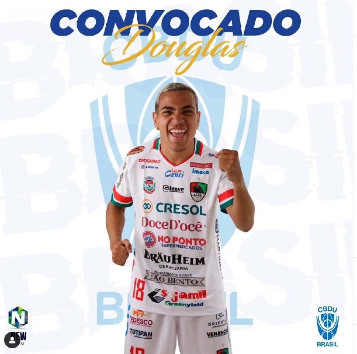 Nesta quarta-feira, dia 08, o ala Douglas da equipe da ACEL-Chopinzinho, recebeu a confirmação de sua convocação para fazer parte do elenco da Seleção Brasileira Universitária de Futsal masculina que vai representar o país no Mundial Universitário de Futsal, evento que vai acontecer nas cidades de Braga e Guimarães, em Portugal.