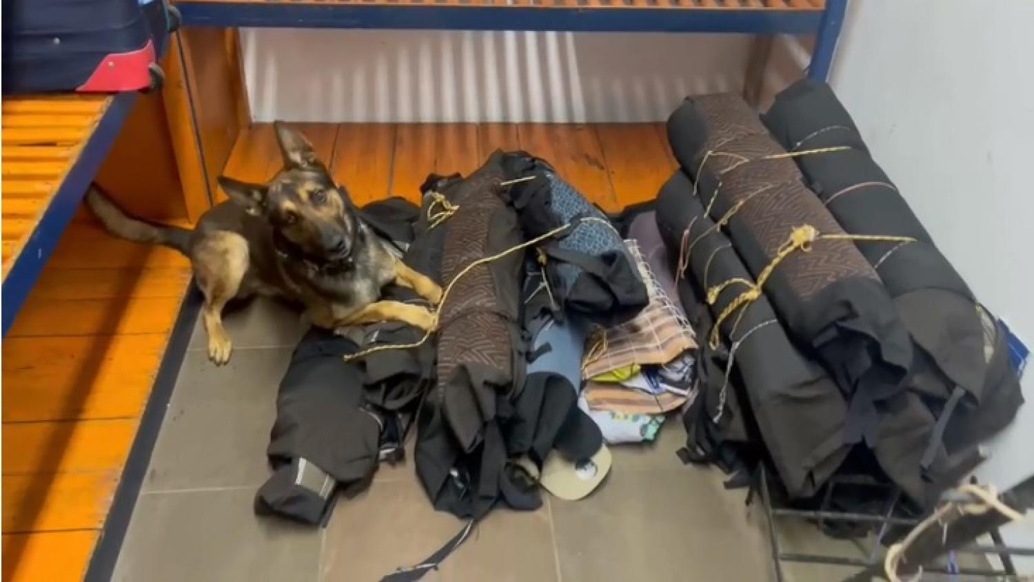 Quando as equipes chegaram no local, soltaram o cão farejador de drogas, armas e munições de nome k-9 Raio, no saguão da rodoviária, o qual ao iniciar as buscas farejando se dirigiu até a porta do guarda volumes da rodoviária. Em seguida indicou positivamente a presença do odor de drogas e/ou armas e/ou munições saindo de dentro do ambiente.