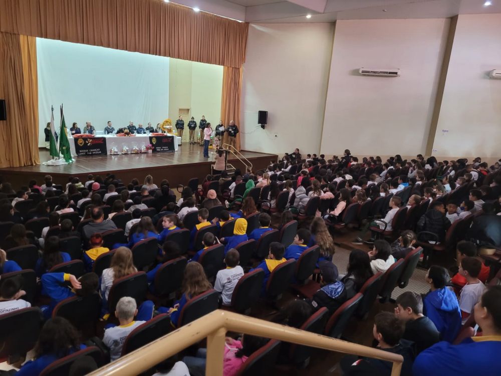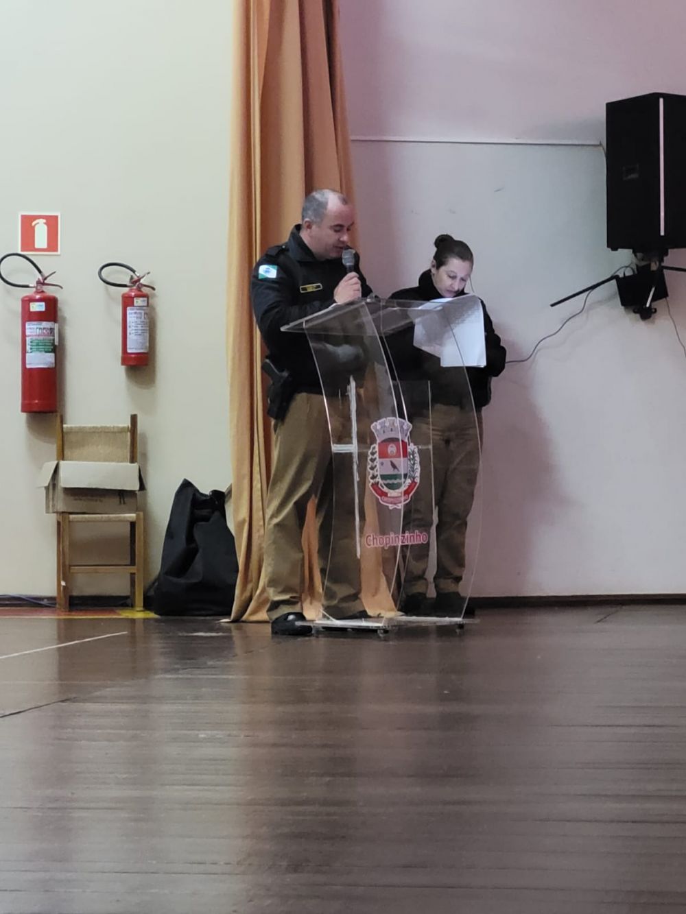 AGRADECIMENTOS: PREFEITURA MINICIPAL, PREFEITO EDSON LUIZ CENCI, EQUIPE DA SECRETARIA DE EDUCAÇÃO E SECRETÁRIA PROF. MARI LUCIA LAZAROTTO, VEREADOR OSMAR CHECHI, NEIVA MAFIOLETTI CONSELHEIRA TUTELAR, DIRETORES, PROFESSORES E PROF. VANDERSON, COMANDANTE DA POLICIA MILITAR DE CHOPINZINHO, TEN DORNELLES, COMANDANTE DO BPEC TEN HAESBAERTH E TODOS OS POLICIAIS MILITARES QUE SE FIZERAM PRESENTES, DE PATO BRANCO, FRANCISCO BELTRÃO, PALMAS, CAPANEMA, REALEZA, DOIS VIZINHOS, SALTO DO LONTRA, SALGADO FILHO, SANTO ANTONIO DO SUDOESTE E BARRAÇÃO.