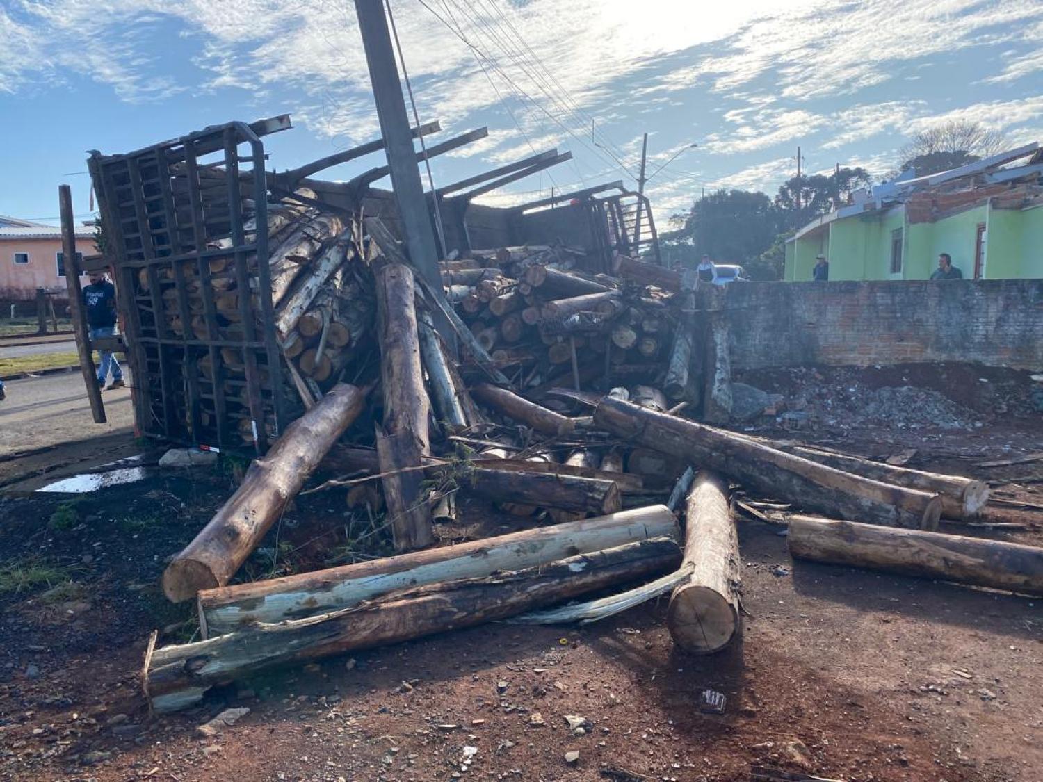 Um caminhão, carregado com toras de eucalipto, tombou no início da manhã desta terça-feira (21) em Reserva do Iguaçu. O acidente aconteceu na Avenida Sebastião Caldas, envolvendo um Ford Cargo.