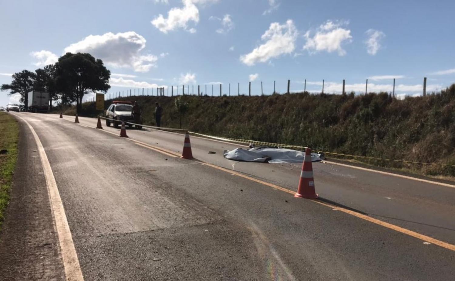 Um casal morreu vítima de um acidente de trânsito registrado no início da tarde desta quinta-feira (23) na PR-459, na região do Distrito de Covó, entre Mangueirinha e Palmas. O casal, que estava de moto e seguia para o trabalho, foi atingido por um veículo Prisma.