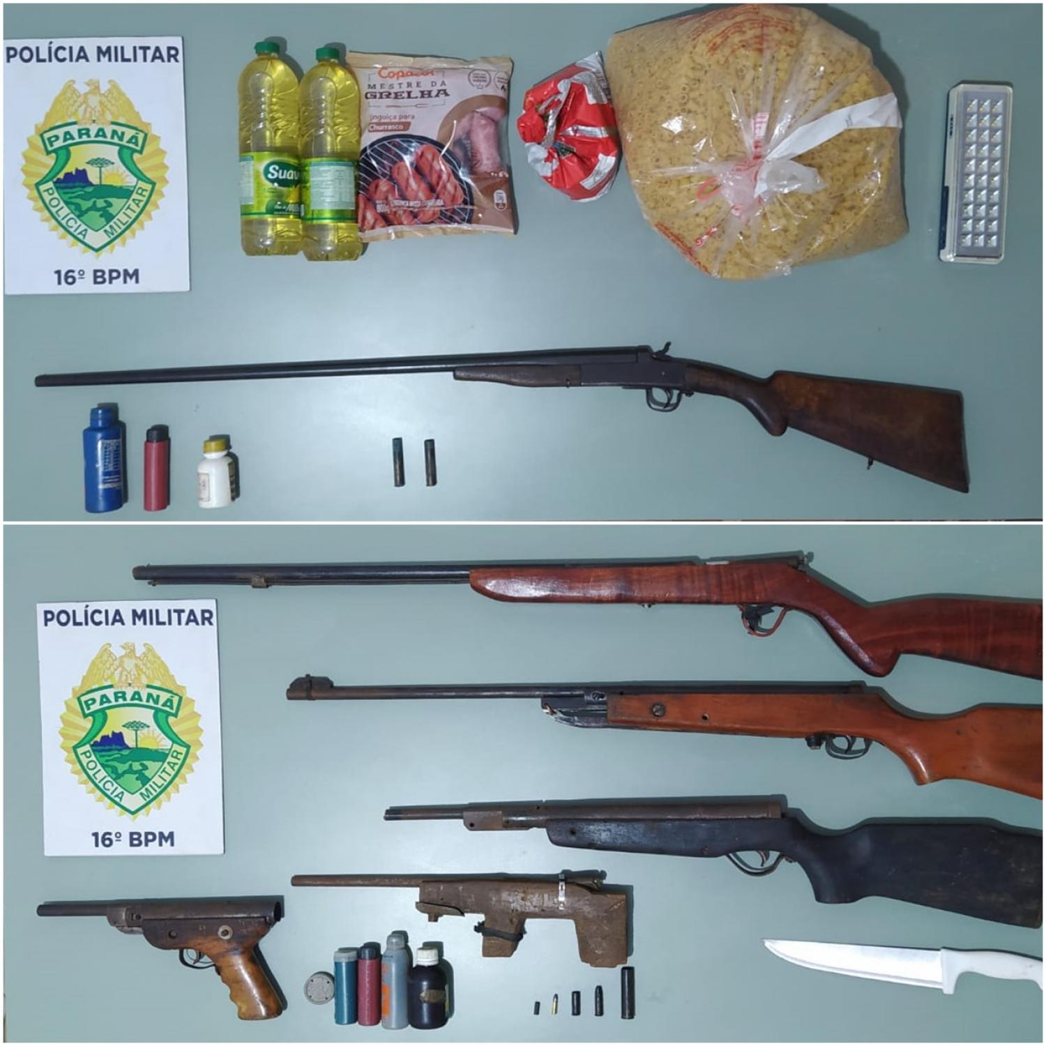 À polícia, o suspeito disse que o restante dos alimentos estava na casa de um homem de 38 anos, que teria auxiliado no furto fazendo o transporte com um veículo Gol. O segundo envolvido não foi localizado em sua residência, porém, a família autorizou buscas, sendo encontradas embaixo de uma cama cinco armas de fogo (garruchas e espingardas) e material para recarga de cartuchos. Os envolvidos foram encaminhados à 14ª SDP de Guarapuava para os procedimentos.
