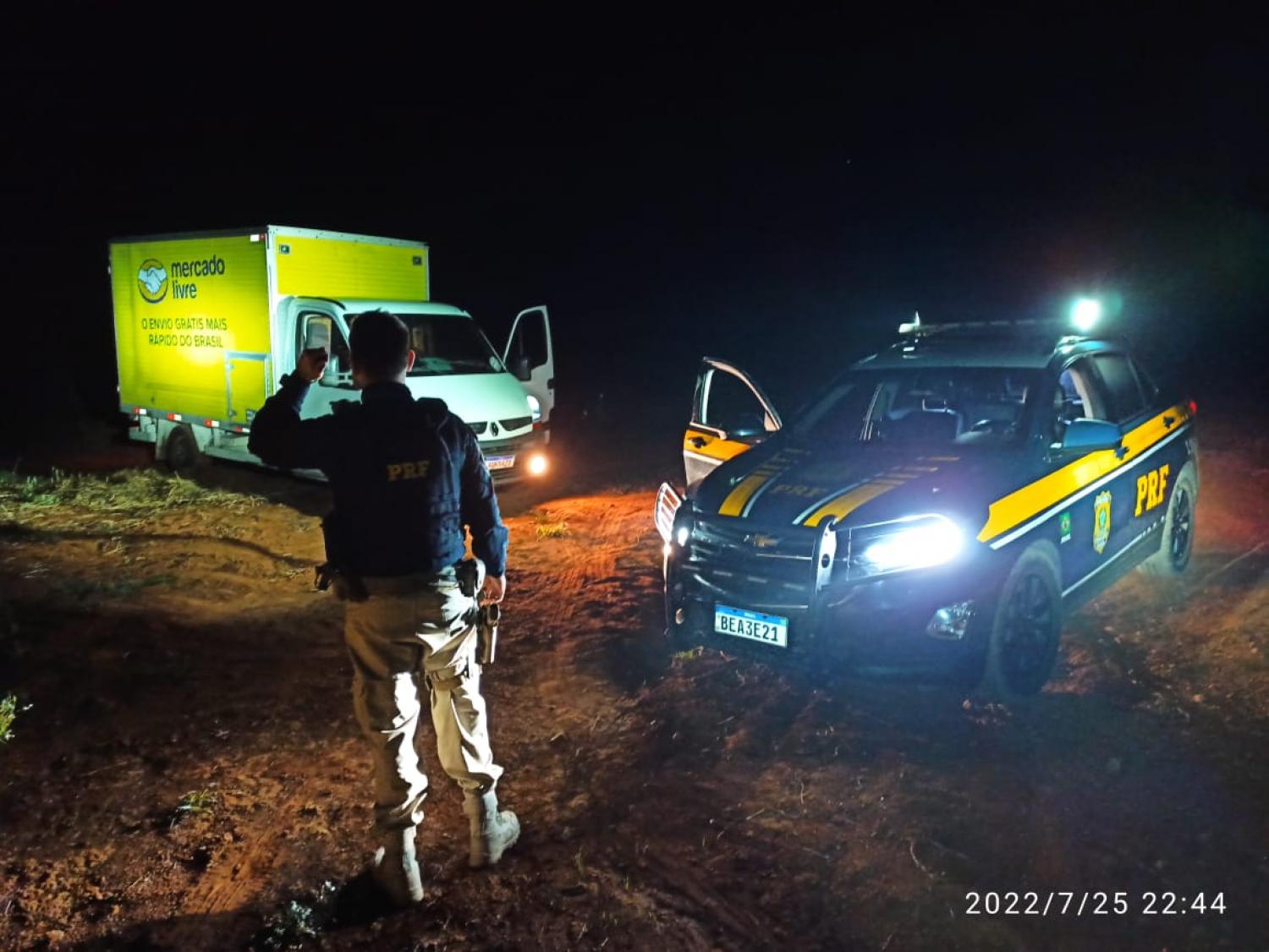 A PRF realizou buscas e, por volta das 22 horas, localizou o veículo abandonado, escondido em uma área de vegetação nativa. Segundo a PRF, parte da carga de encomendas foi roubada. O carro foi devolvido ao motorista. O crime está sendo investigado pela Polícia Civil.