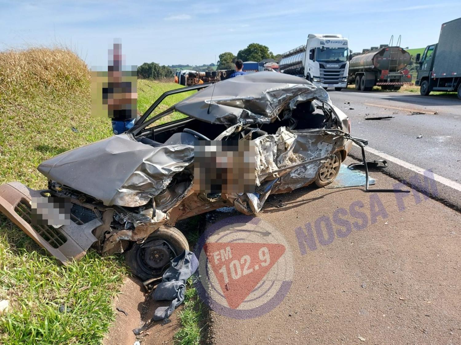 O carro se envolveu no acidente com um caminhão bitrem. Com a violência do impacto, o motorista do Uno teve morte instantânea, ficando preso nas ferragens. O Bitrem tombou na pista. O acidente foi na região do Distrito de Lagoa Seca, sentido Guarapuava. O trânsito apresentou lentidão até próximo da meia noite.