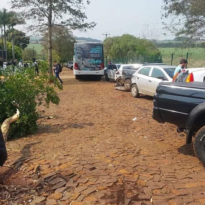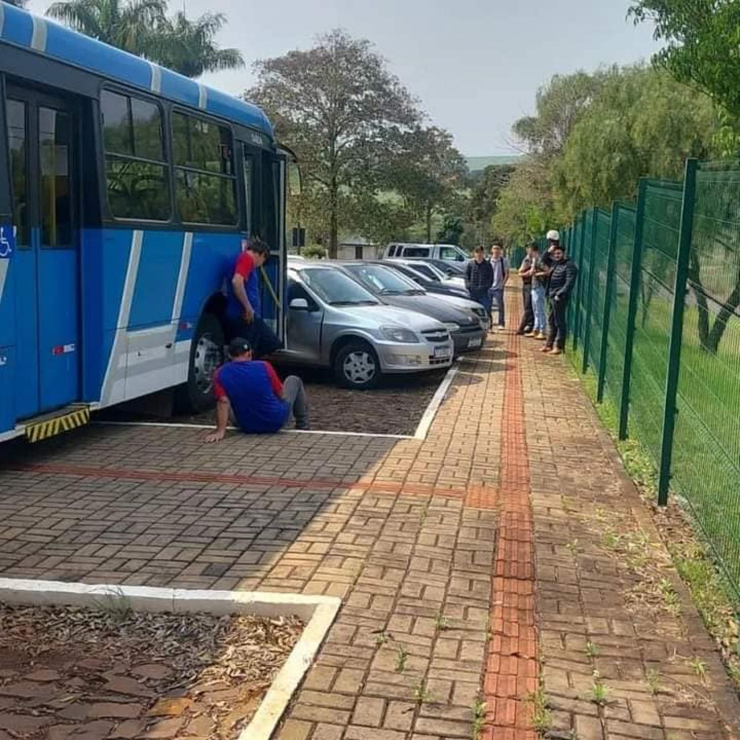 Um ônibus de transporte coletivo colidiu em mais de 10 carros que estavam estacionados na UTFPR de Dois Vizinhos. O acidente aconteceu no final da manhã desta quinta-feira, 8. Ninguém se feriu. De acordo com informações apuradas, mecânicos estavam trabalhando no coletivo. Quando o ônibus foi colocado no chão, a porta fechou automaticamente e ele começou a descer sem direção, se chocando com os carros. Uma árvore (de porte pequeno) também foi arrancada. O acidente resultou apenas em danos materiais.