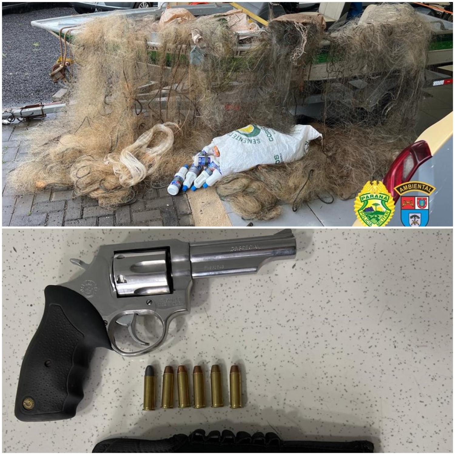 Durante fiscalização e averiguação de denúncias anônimas, a Polícia Ambiental apreendeu redes e uma arma de fogo nas últimas horas em Rio Bonito do Iguaçu e Saudade do Iguaçu.