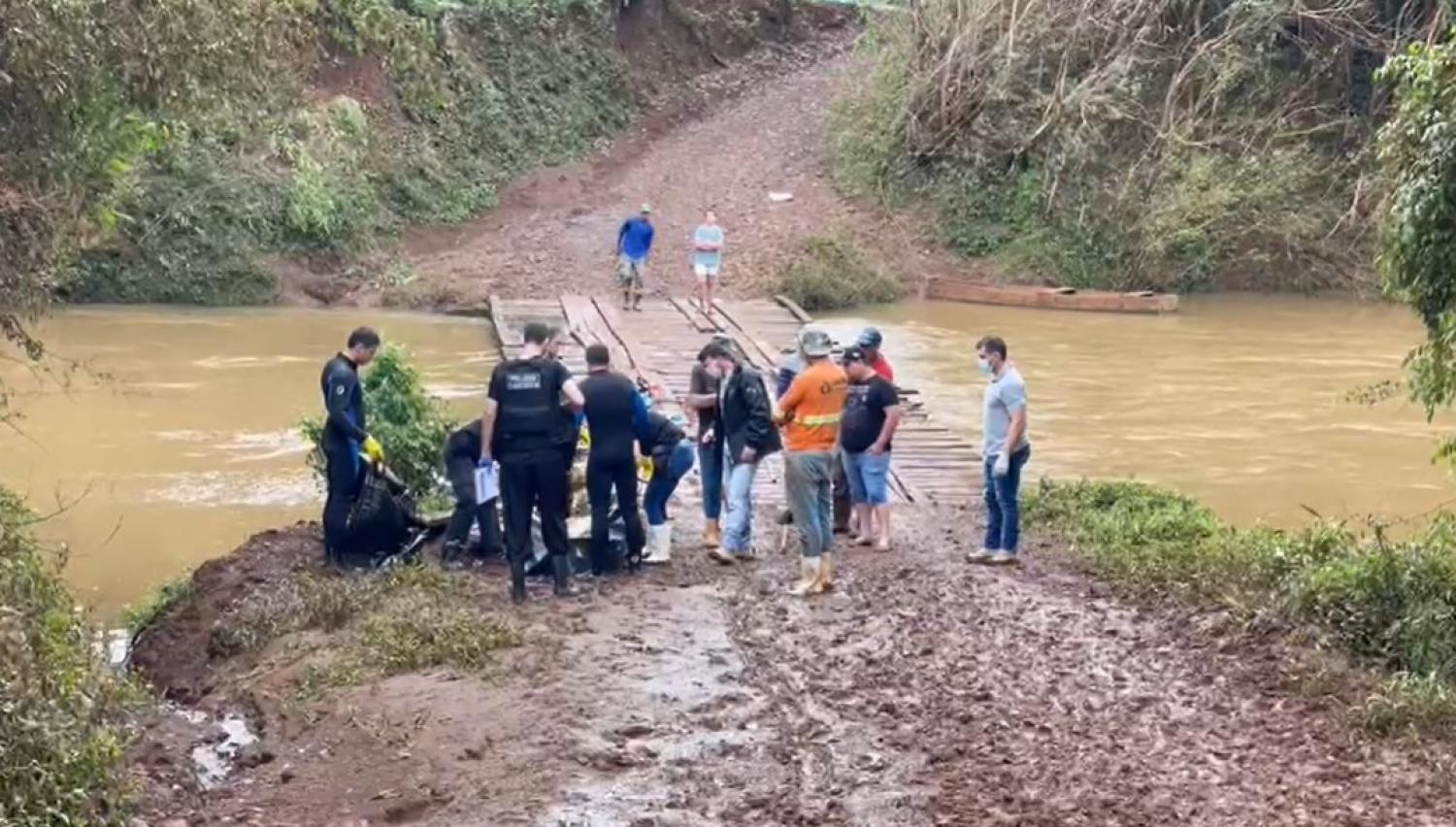 Depois de uma semana, o Corpo de Bombeiros junto com equipes da Polícia Civil, Criminalística e IML retornaram à comunidade de Vargem Alegre, interior de Francisco Beltrão. No local, enroscado embaixo de uma ponte no Rio marrecas foi encontrado o corpo de um homem.