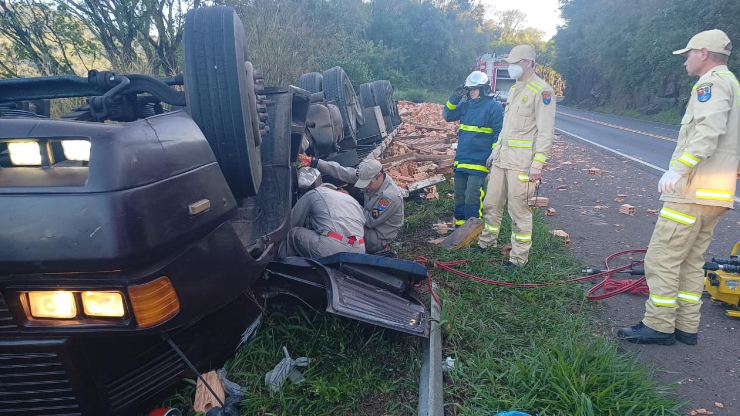 Um acidente de trânsito no início da manhã desta terça-feira no KM 410 da rodovia BR-277, em Candói, deixou uma vítima fatal. A ocorrência, que mobilizou o Corpo de Bombeiros e a PRF, envolveu um caminhão carregado com tijolos.