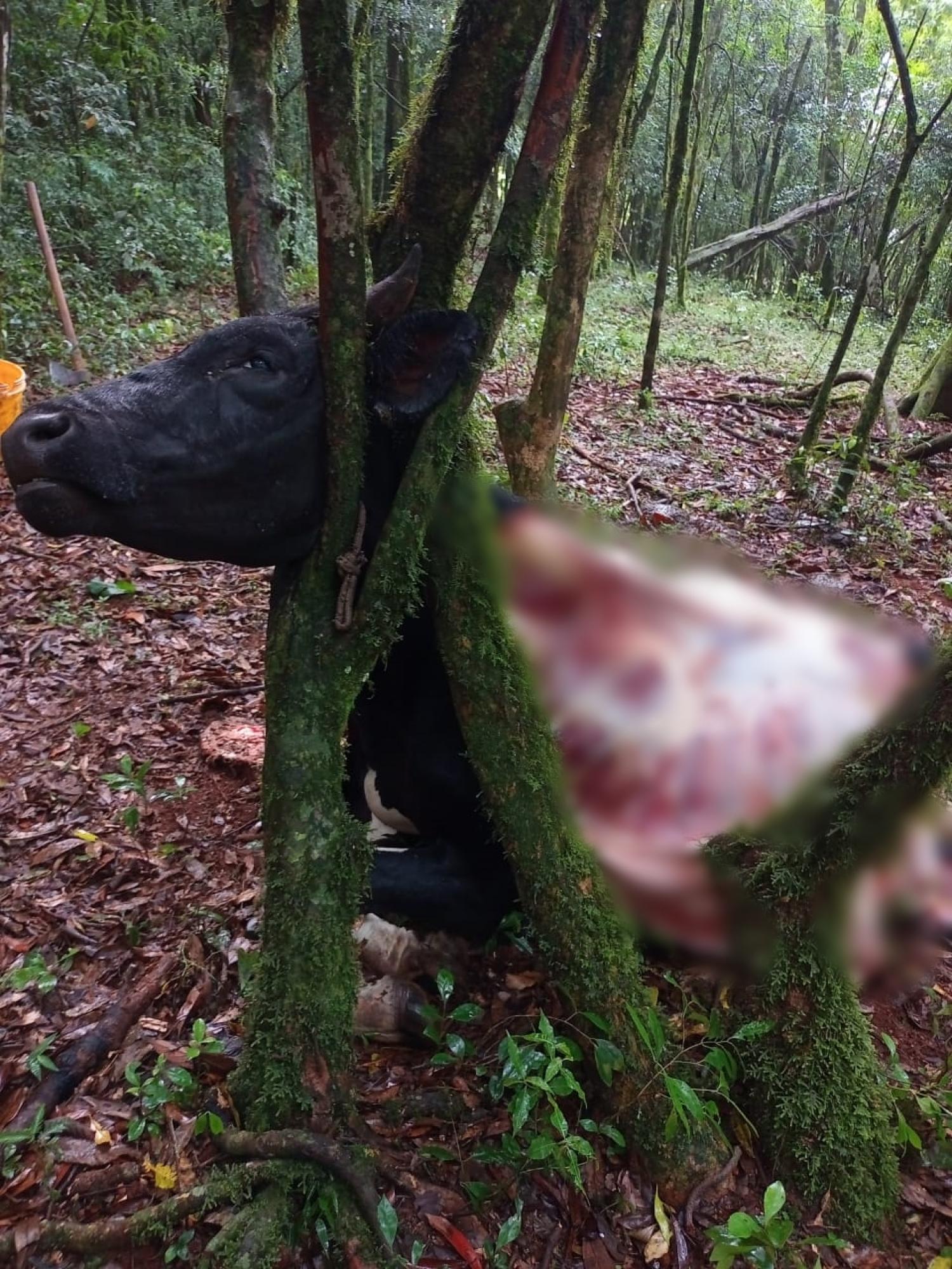 De acordo com o proprietário, o animal estava juntamente com outros na chácara de Ivo Dalvesco, onde provavelmente na noite de domingo para segunda feira, os meliantes prenderam uma das cabeças em uma árvore, mataram e levaram as melhores partes da carne, deixando o restante no local.