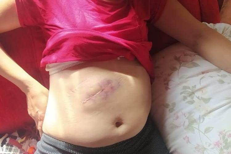 Ao se recuperar da anestesia, um integrante da equipe médica lhe informou que o médico estava chegando para fazer a cirurgia das amídalas, sendo que estranhou e nesse instante percebeu que estava com o abdômen cortado e sangrando, após a equipe de enfermagem fazer um curativo, ela foi sedada novamente.