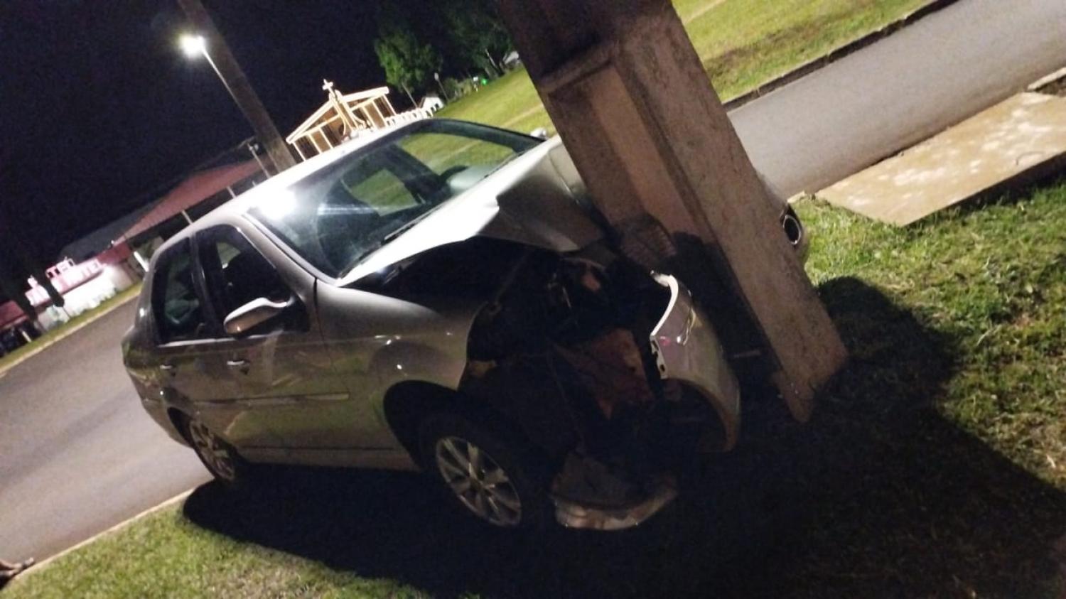 O homem dirigia um Fiat Siena emplacado em Candói e bateu contra um poste após perder o controle da direção. Apesar dos danos no carro, o motorista não sofreu ferimentos.