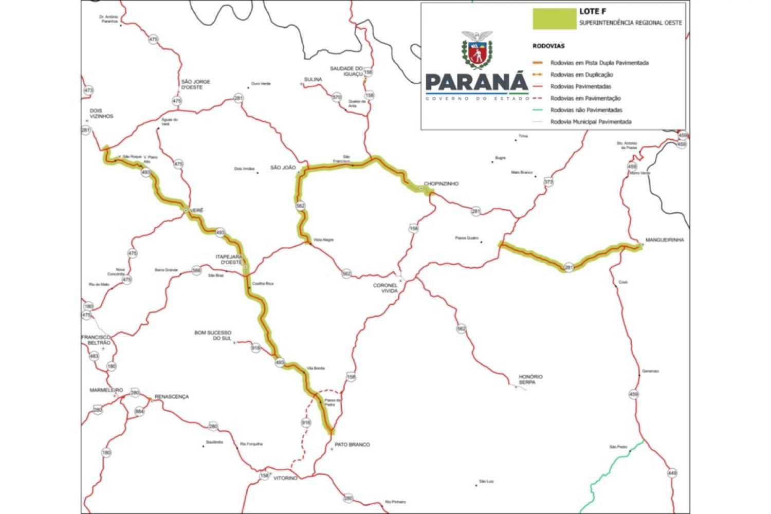 A licitação faz parte do programa Proconserva, que realiza manutenção e conservação das rodovias estaduais intermediárias. Serão beneficiados mais de 215 mil habitantes de nove municípios: Bom Sucesso do Sul, Chopinzinho, Coronel Vivida, Dois Vizinhos, Itapejara D’ Oeste, Mangueirinha, Pato Branco, São João e Verê.