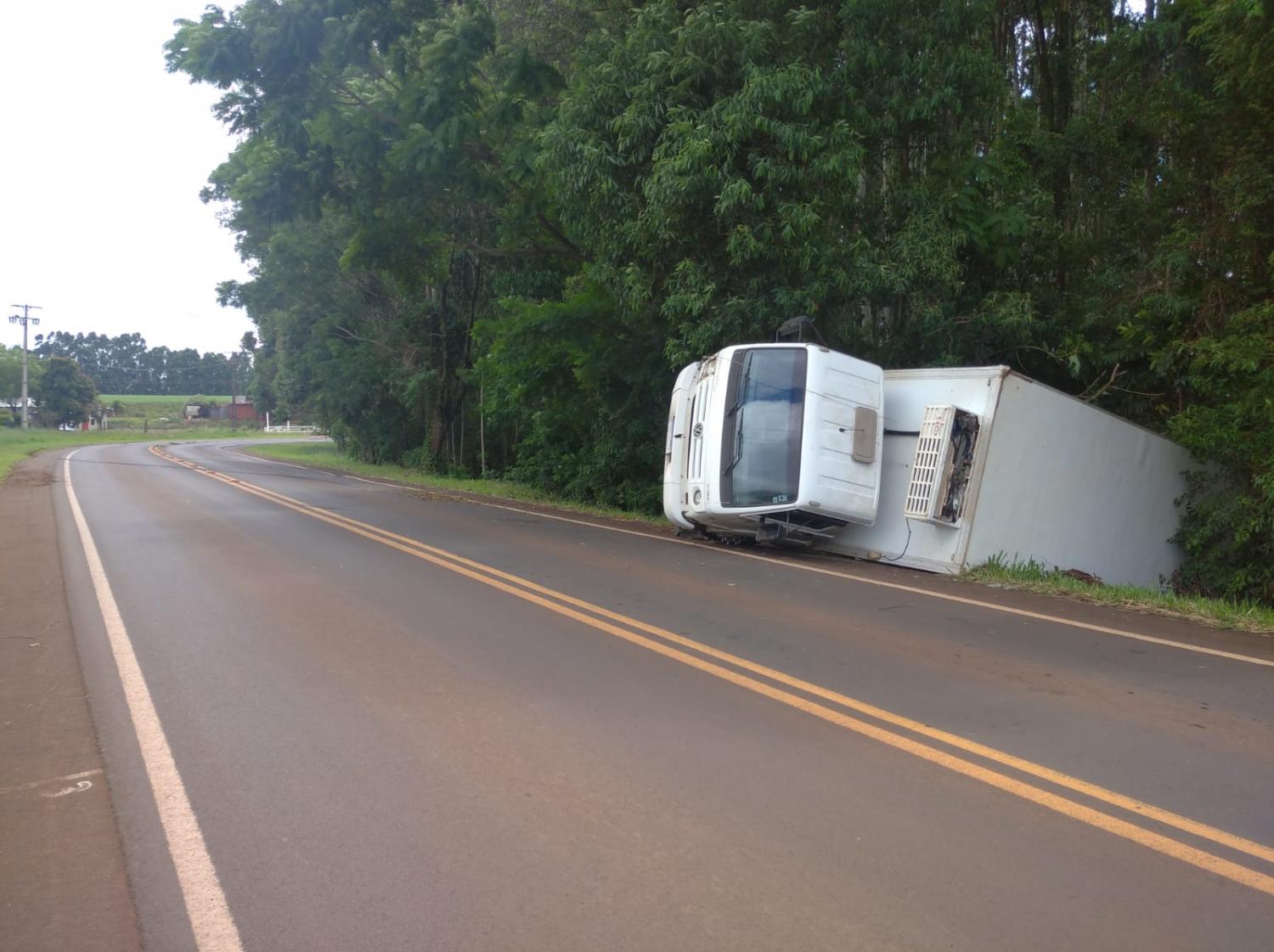 Segundo informações colhidas no local um caminhão Volkswagen furgão refrigerado com placas modelo Mercosul que pertence a uma empresa de alimentos de Arapongas Paraná e estava carregado com carne congelada seguia pela rodovia entre os trevos sentido a Chopinzinho e São Jorge d'Oeste quando que na curva próximo a Associação Atlética Coasul no contorno da cidade de São João, o condutor do caminhão de 32 anos perdeu o controle da direção vindo a atravessar a rodovia e tombar no sentido contrário.