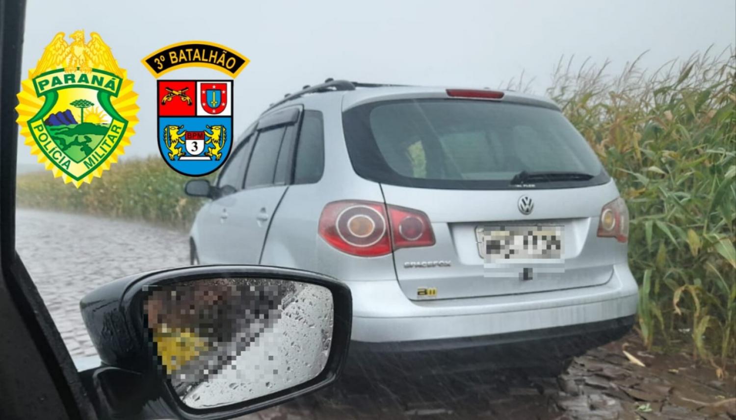 Por volta das 16:45 desta terça feira, dia 03, após denúncia, a equipe policial militar deslocou até a Linha Independência, zona rural, município de Pato Branco-PR, onde foi localizado o veículo VW/Spacefox, o qual possuía registro de furto ocorrido na data de 01/01/2023, na cidade de Palmas-PR.