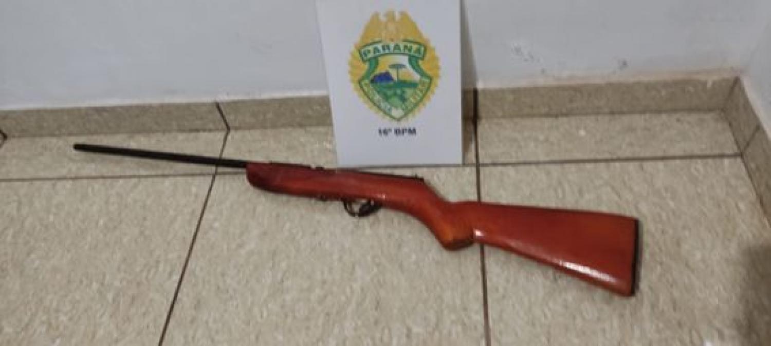 Foi feito buscas na casa e a espingarda tratava-se de uma espingarda de fabricação artesanal calibre 22.