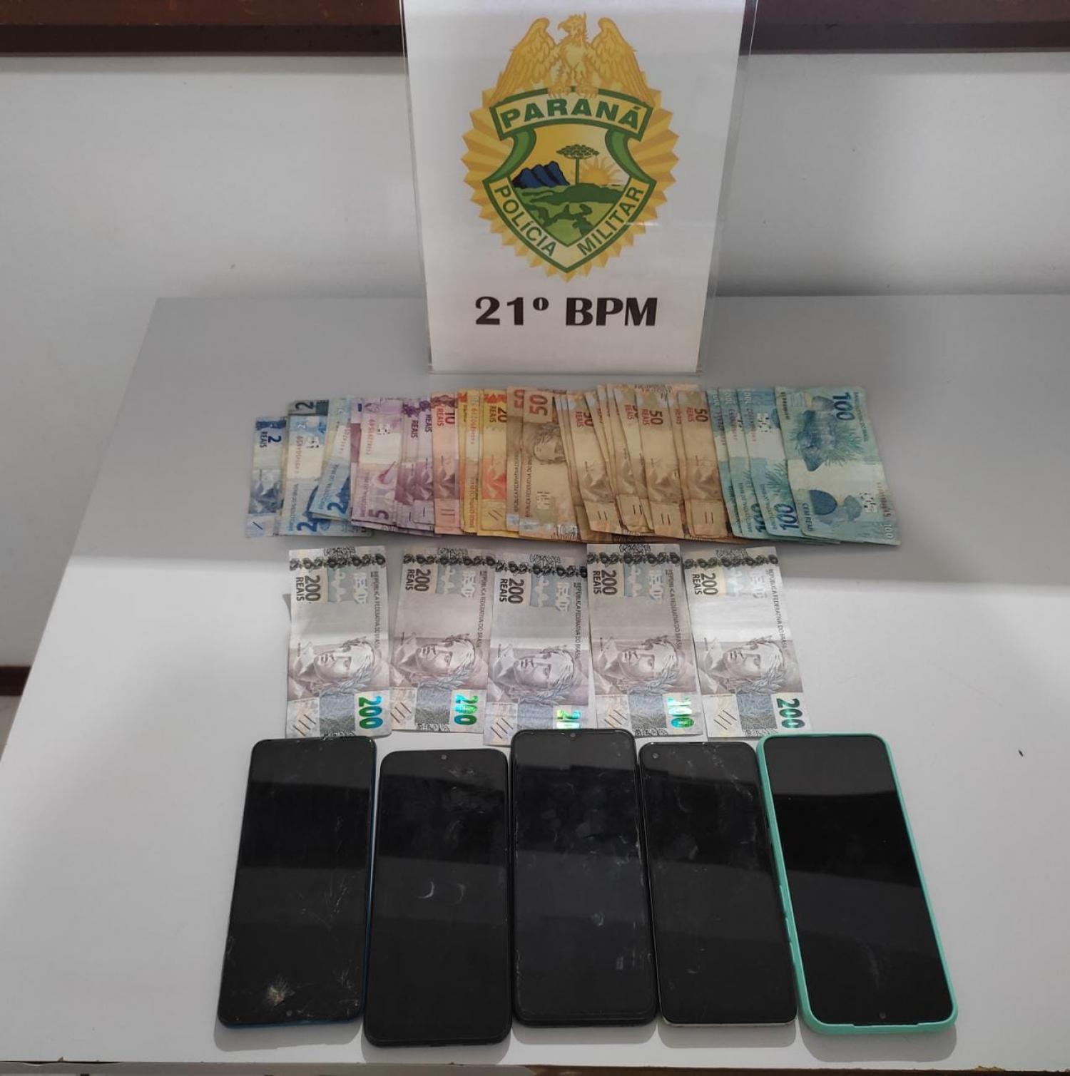 Diante da constatação, foi apreendido ainda mais R$ 1.398,00 (um mil trezentos noventa e oito reais) em espécie todas de procedência duvidosa, 5 celulares, roupas em que aparece imagens dos autores passando as notas em comércios locais, identificado ainda, todos os veículos utilizados pelos autores para o ato dos crimes.