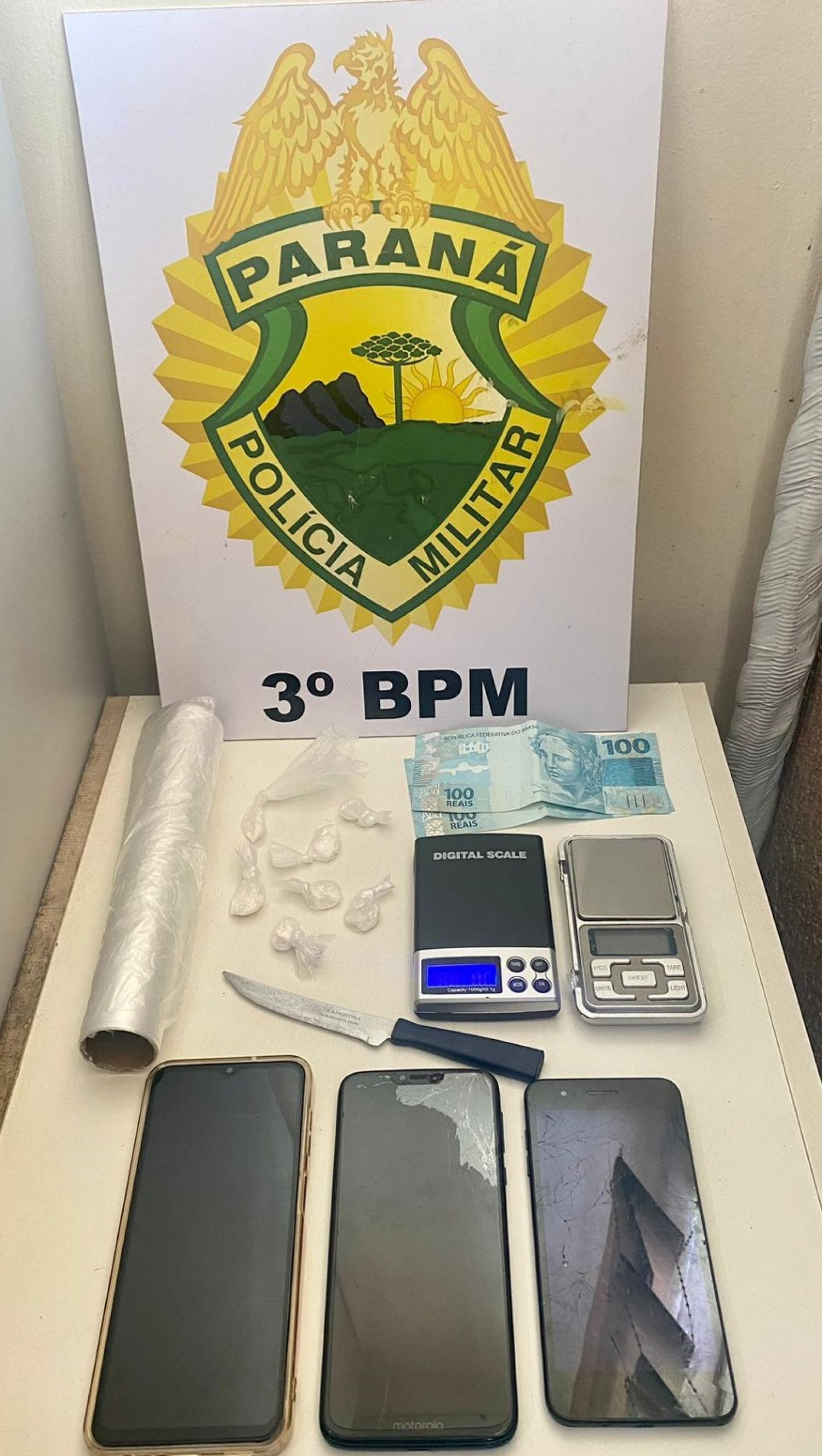 Por volta das 11:30 desta segunda feira, dia 30, após denúncias de que um indivíduo estaria comercializando a venda de entorpecentes no município de Coronel Vivida-PR, a equipe da Patrulha Rural realizou diligências pelo bairro Imaribo, localizando um veículo VW/Golf, com as características repassada, conduzido por um indivíduo (26), e após buscas no automóvel foi logrado êxito na localização de aproximadamente sete gramas de substância análoga à cocaína, R$200,00 (duzentos reais) em espécie, duas balanças de precisão e 03 aparelhos de celular.