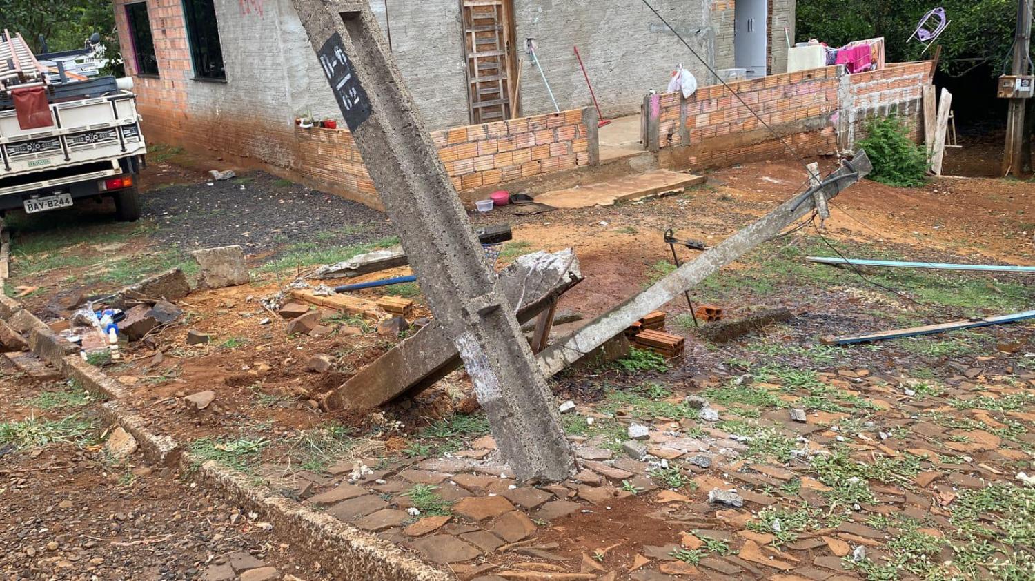 Com a colisão, o poste foi partido ao meio e houve danos na tubulação da Sanepar, provocando vazamento de água.