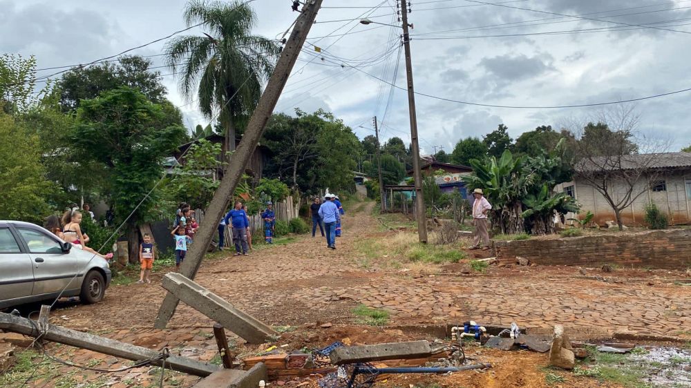 Parte da rua ficou sem energia, água e internet por um bom tempo. Funcionários da Pacto Energia e Saneval trabalham intensamente para restabelecer a energia e água.