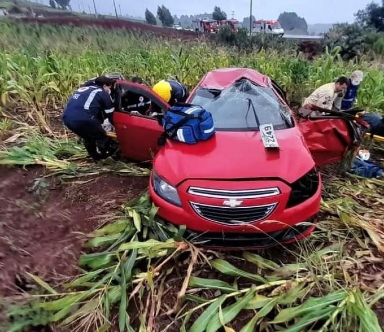 Trata-se de uma saída de pista, seguida de capotamento envolvendo um GM/Prisma, com placas de Videira - SC, após sair da pista o veículo adentrou cerca de 200 metros em uma plantação de milho. O veículo era ocupado por um casal de idosos, as vítimas estavam conscientes e orientadas, apresentando ferimentos. Após receberem os primeiros socorros pelas equipes do SAMU e Corpo de Bombeiros, foram conduzidas à UPA da cidade.