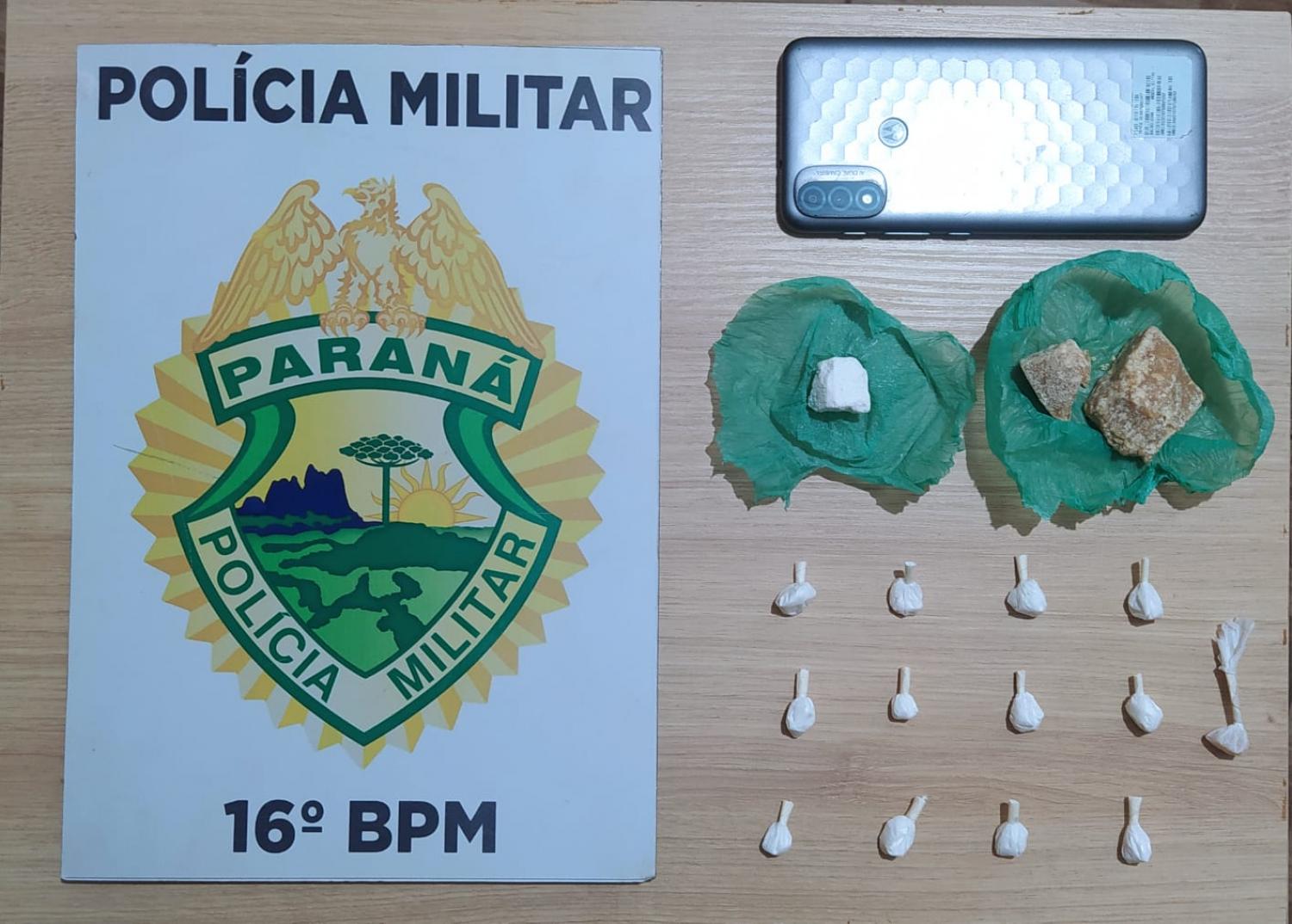 Durante averiguação, a equipe policial flagrou saindo do local um rapaz de 27 anos. O jovem, que já havia embarcado em um veículo Gol de cor branca, portava uma bucha de crack, revelando ser apenas usuário. Na residência denunciada, após buscas, foram localizados dois recipientes com porções de crack e outro com uma quantidade de cocaína, essa já pronta para venda. Traficante e usuário foram detidos e encaminhados à 14ª SDP de Guarapuava para elaboração do flagrante.