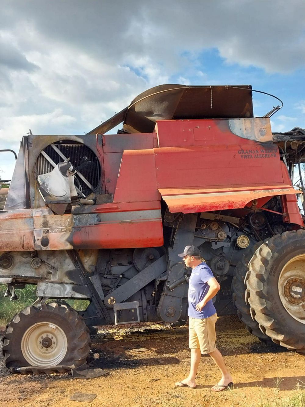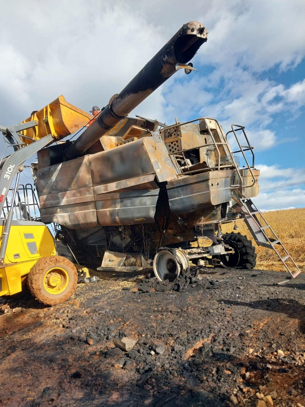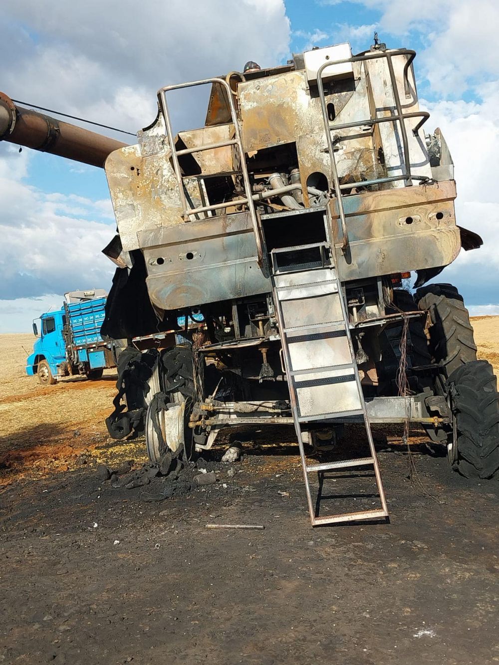 O Corpo de Bombeiros foi acionado, mas por conta da distância não conseguiu evitar a destruição das máquinas. O agricultor conseguiu salvar a plataforma da colheitadeira, que foi desengatada.