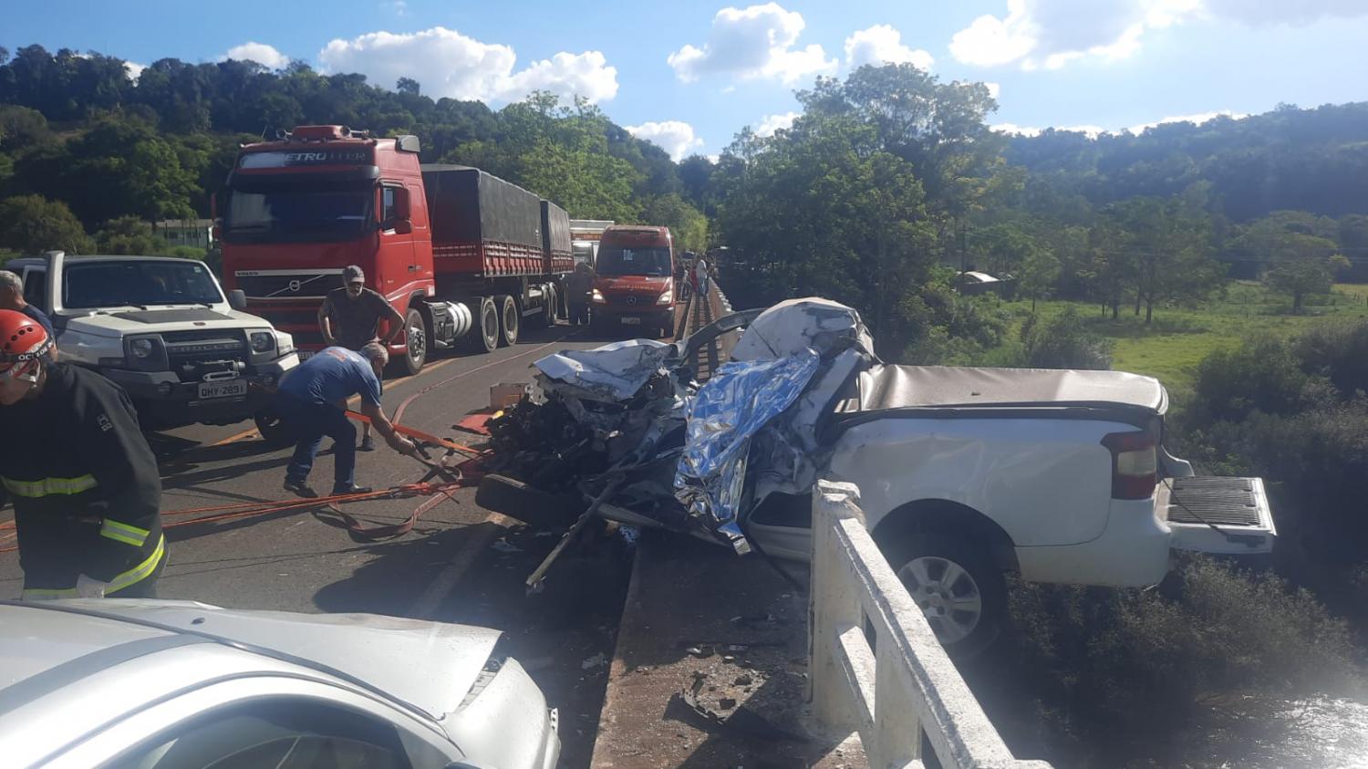 Uma pessoa morreu e outras duas ficaram feridas em um acidente registrado na PR-281, na Ponte do Rio Capanema, entre as cidades de Realeza e Planalto, no inicio da tarde deste sábado (29). A ocorrência envolveu uma camionete Montana, um Celta e um caminhão.