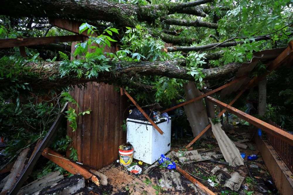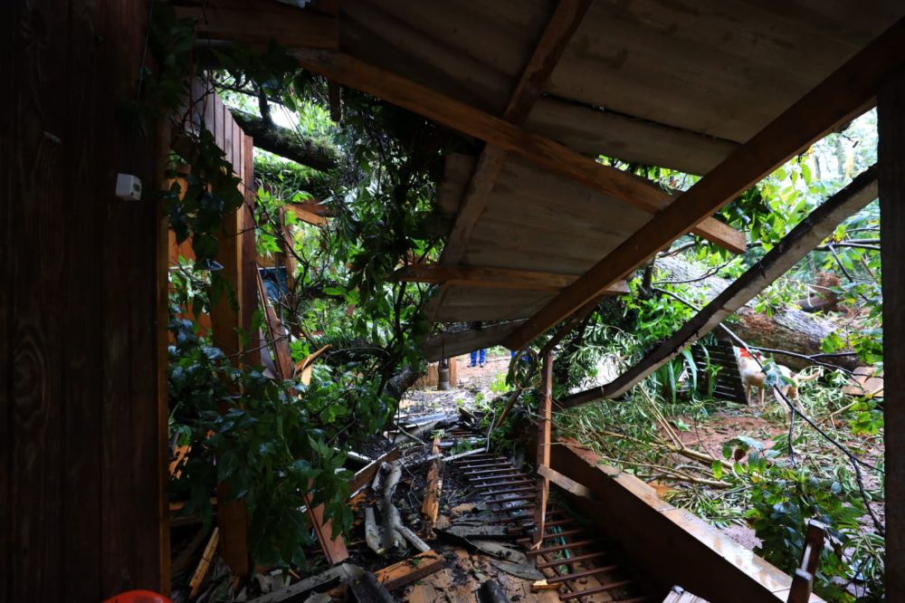 O Corpo de Bombeiros está fazendo o corte das árvores que oferecem riscos as demais residências.