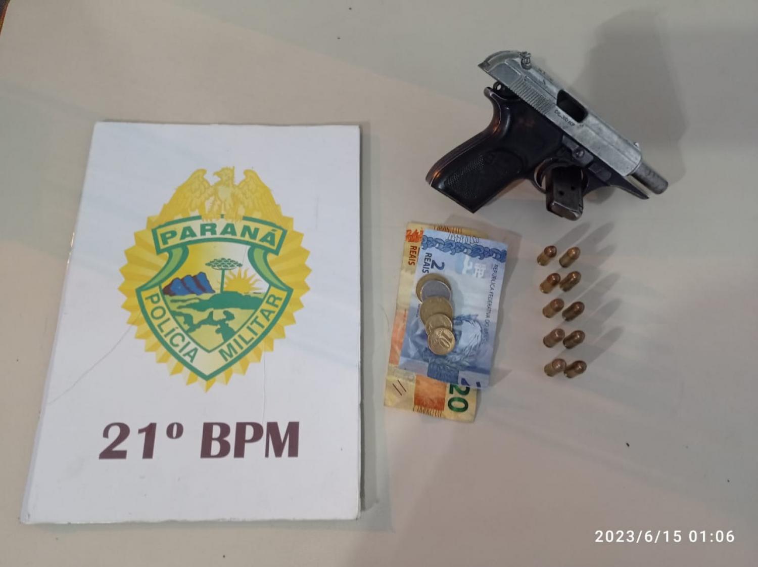 Próximo da casa foi localizada uma motocicleta que o homem disse ser sua. O preso, junto com a motocicleta, a arma foi encaminhado para a Central de Flagrantes da 19ª SDP de Francisco Beltrão para os procedimentos judiciários.