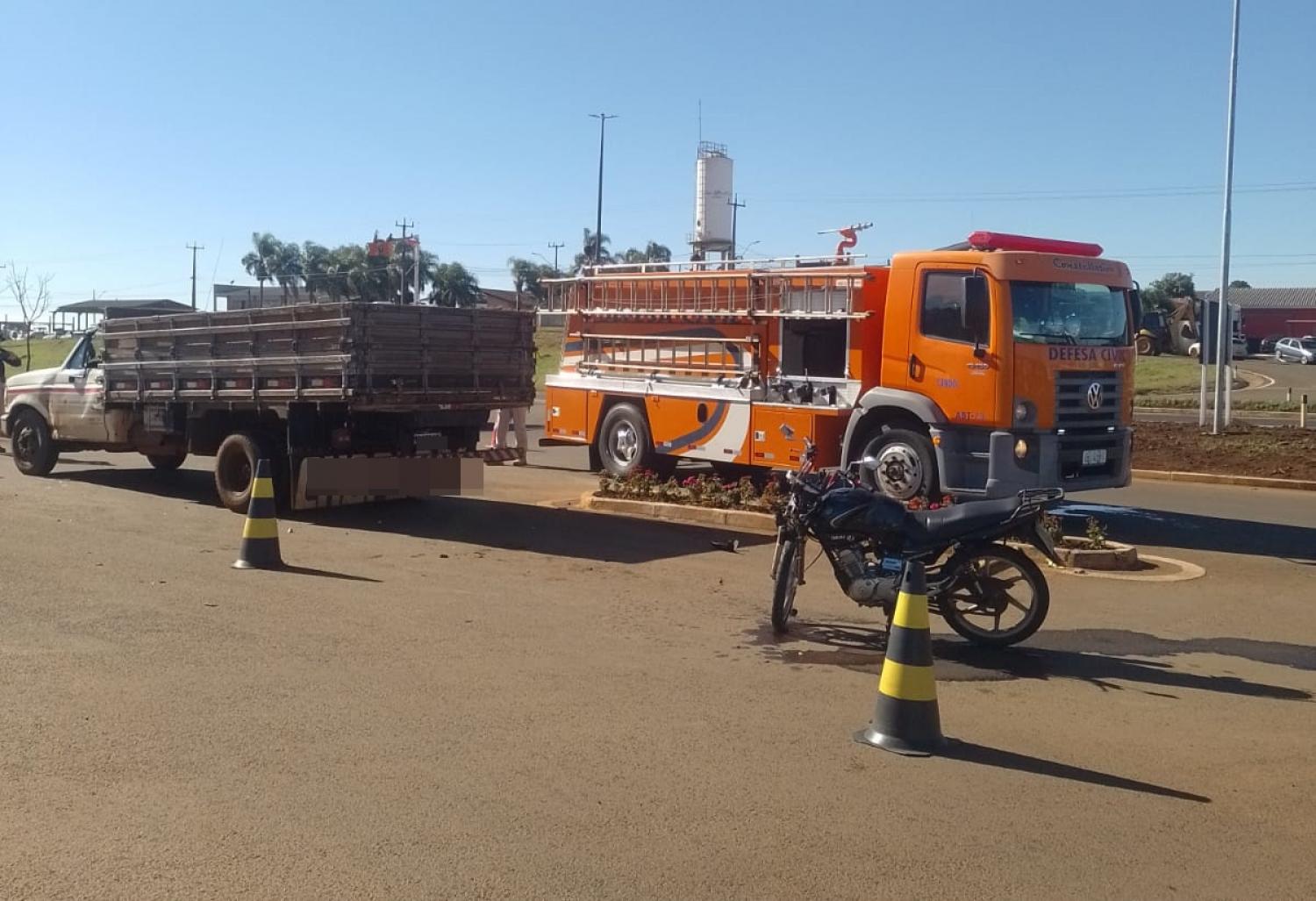 Duas pessoas ficaram feridas vítimas de um acidente registrado no final da manhã desta terça-feira (27) na BR-373, trevo de acesso a Candói. O acidente envolveu uma moto e uma camionete Ford F.4000.