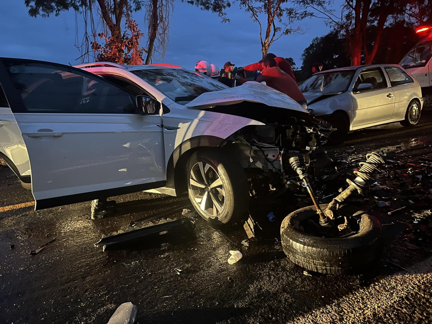 Os carros envolvidos foram um Nivus de Santa Izabel do Oeste, um Gol de Ampére e uma Fiat Strada de Foz do Iguaçu. O condutor da Strada, Diego dos Santos Meurer, entrou em óbito. No Nivus estavam em três pessoas, e duas, sendo uma criança, ficaram feridas. No Gol estavam duas pessoas e ninguém se feriu.