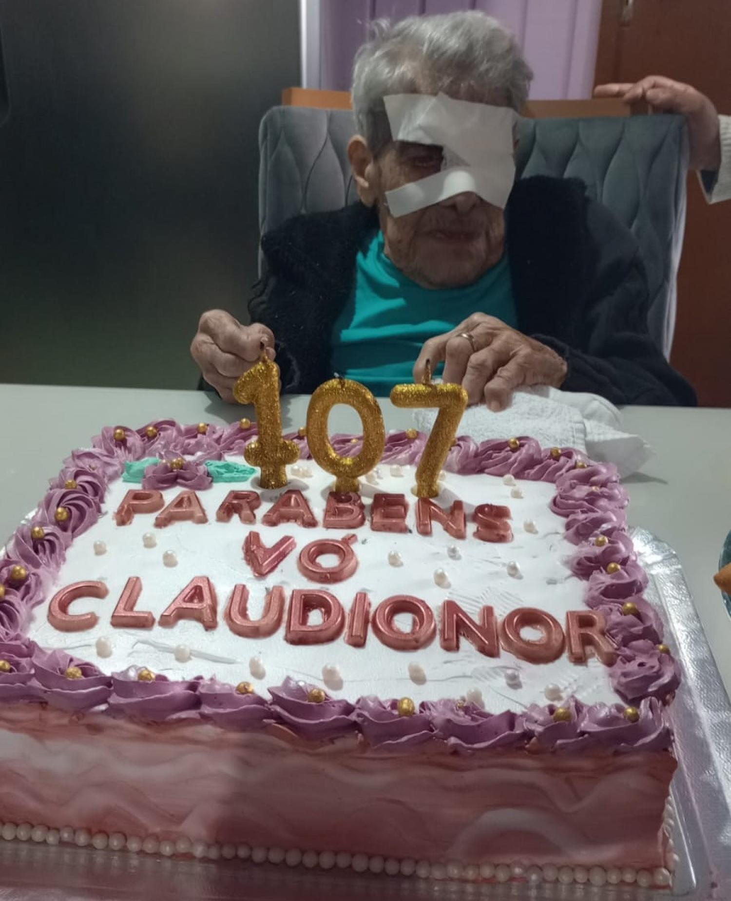 Nascida na cidade gaúcha de Tenente Portela, dona Claudionor foi homenageada pela família com um bolo e muita alegria. Apesar da idade, ela ainda aprecia um golinho de bebida alcoólica e não dispensa o cigarro.