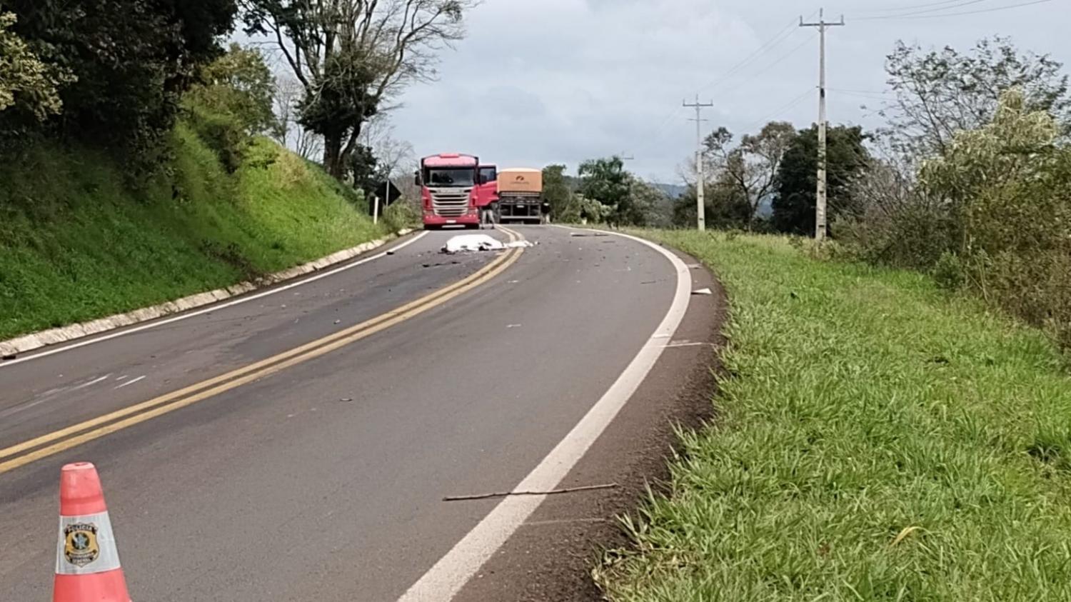 Na tarde deste sábado (12), por volta das 15h30, na BR-163 no trecho entre Santo Antônio do Sudoeste e Barracão, ocorreu um grave acidente do tipo colisão frontal, com vítima fatal. O acidente envolveu uma motocicleta e uma carreta carregada com adubo.