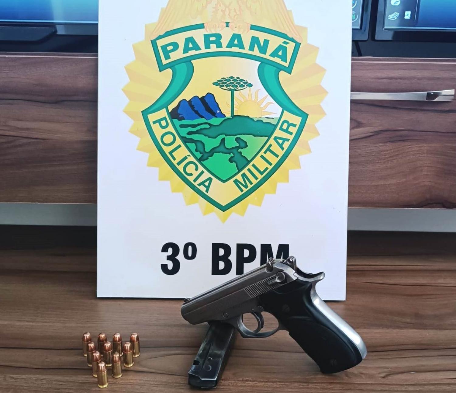 Por volta das 13:30 desta quarta-feira, dia 16, durante Operação Hórus, às equipes Policiais Militares da ROCAM e da Agência Local de Inteligência do 3º BPM realizavam bloqueio e fiscalização nas proximidades da Usina Salto Santiago, em Saudade do Iguaçu, quando abordaram o veículo Ford/F350, conduzido por um indivíduo (33) e o passageiro (30), e em busca veicular foi localizado no console central uma pistola cal. 380, com 10 munições.