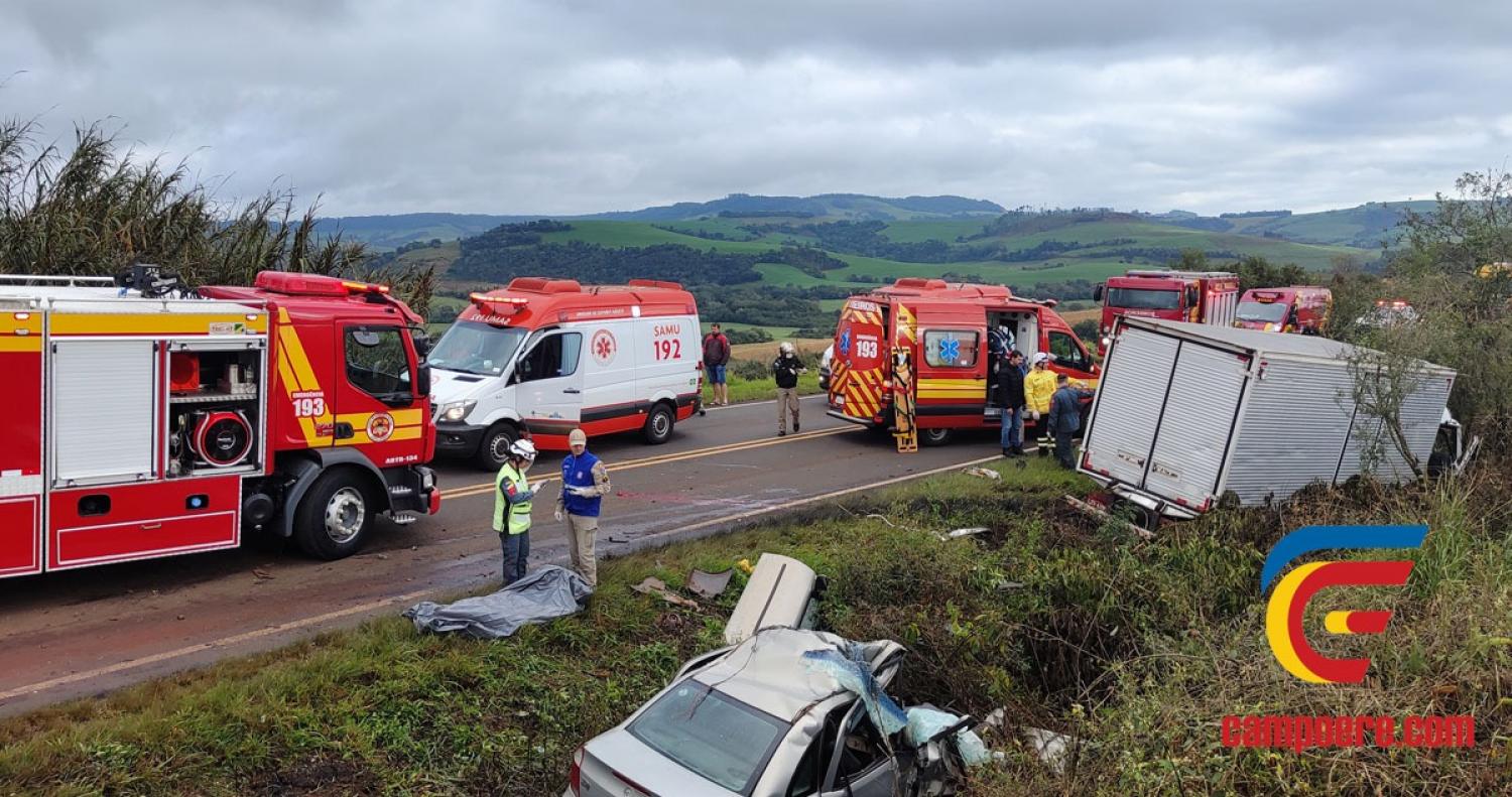 O acidente ocorreu no sábado (19), por volta das 07h30, envolvendo um Corsa e um caminhão furgão, ambos emplacados em Campo Erê (SC). O passageiro do Corsa, Mikael Xavier Rocha, de 20 anos, morreu na hora.