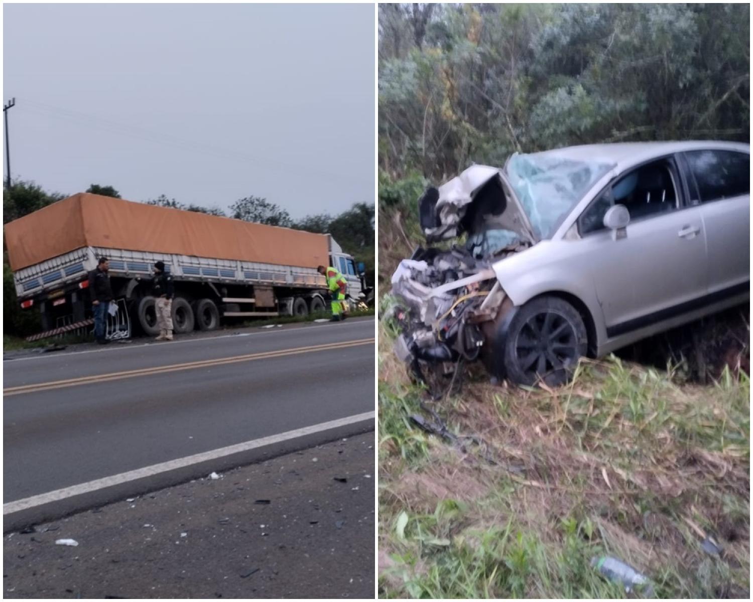 De acordo com a Brigada Comunitária de Candói, que deslocou uma equipe ao local, a batida foi entre uma carreta emplacada em Irati e um Citroen com placa de Guarapuava. Com o impacto da batida, o carro teve a parte dianteira totalmente danificada, bem como a dianteira da carreta.