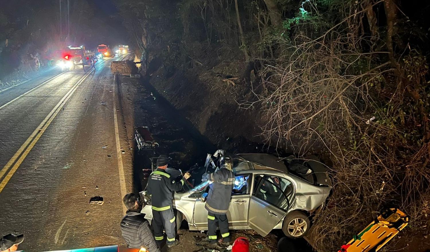 O carro se envolveu no acidente com uma camionete S10 emplacada em Blumenau (SC). O jovem chegou a ser socorrido, mas não resistiu. Os motoristas, Alessandro Monteiro, de 32 anos, e Gabriel Lopes Messias, de 27 anos, tiveram ferimentos médios, respectivamente.