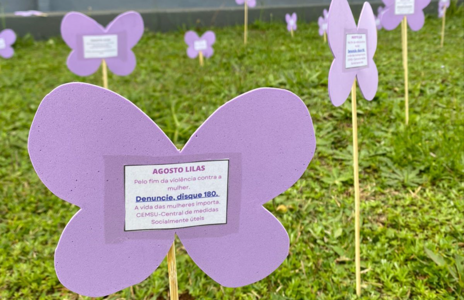 O oitavo mês do ano foi dedicado à conscientização pelo fim da violência contra a mulher através da campanha Agosto Lilás. Para chamar a atenção da sociedade sobre o tema, a equipe da Central de Medidas Socialmente Úteis (CEMSU) montou um jardim com borboletas no espaço do Fórum de Justiça da Comarca de Pinhão. A borboleta foi escolhida de forma simbólica por representar transformação e renovação.