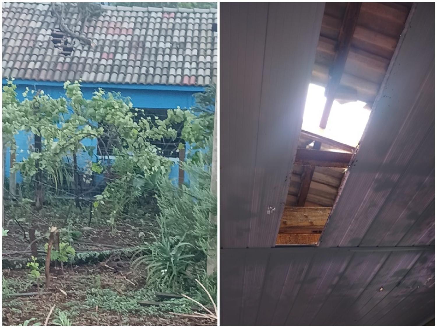 A Brigada Comunitária esteve no local e constatou dano nas telhas e no forro. Apesar dos estragos, ninguém se feriu.