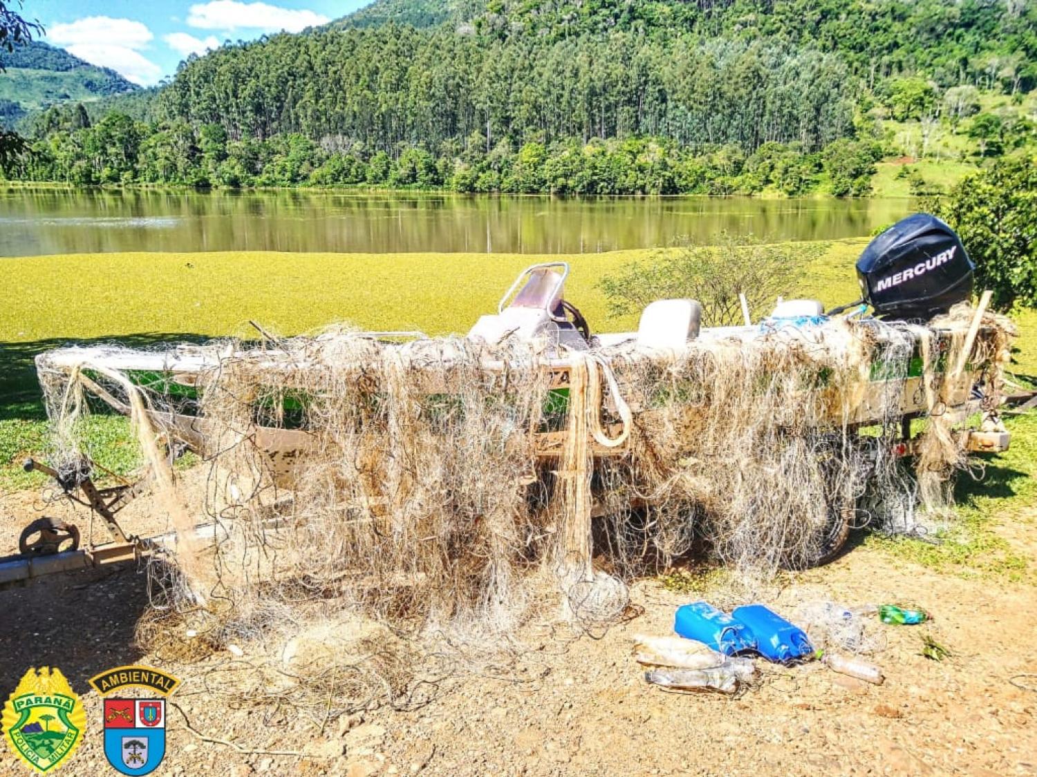 Materiais utilizados para a prática da pesca predatória foram apreendidos pela Polícia Ambiental (Força Verde) nesta segunda-feira (09) em Mangueirinha, no Sudoeste do Paraná.