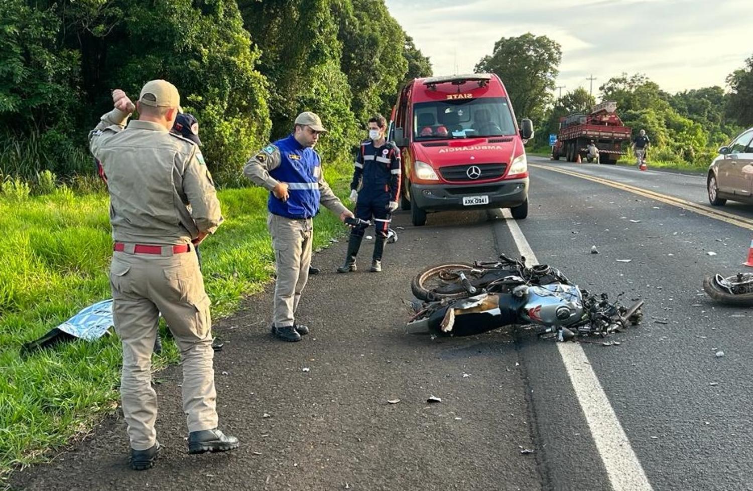O motorista do caminhão informou que o motociclista acessou a rodovia a partir de uma estrada rural e veio a se envolver no acidente. A Polícia Rodoviária Federal (PRF) registrou a ocorrência.