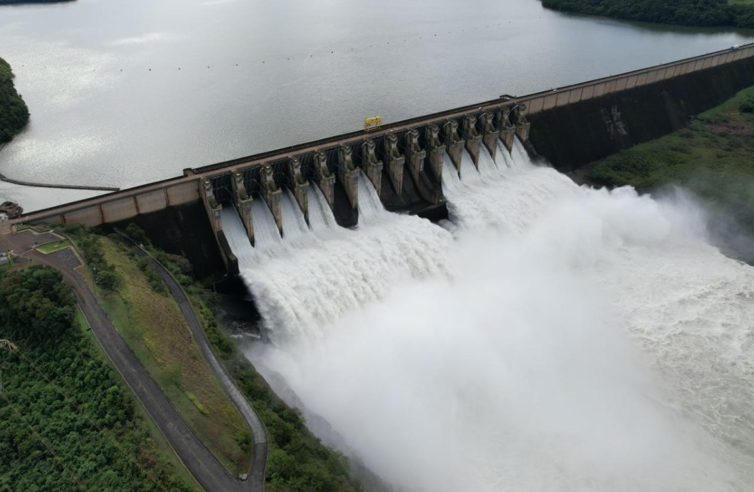 A região sudoeste, onde está localizada a Usina Salto Caxias, registrou acumulado de chuva acima de 100 mm nas últimas 24 horas. A vazão afluente (que chega à barragem da usina) triplicou da madrugada até o final da tarde deste sábado e, mesmo com as comportas abertas, em um intervalo de 10 horas, o nível do reservatório passou de 50% para 98% (às 18h de hoje). Diante disso, o vertimento precisou passar, hoje, de 4 mil m³/s para 13 mil m³/s, com possibilidade de chegar a 16 mil m³/s.