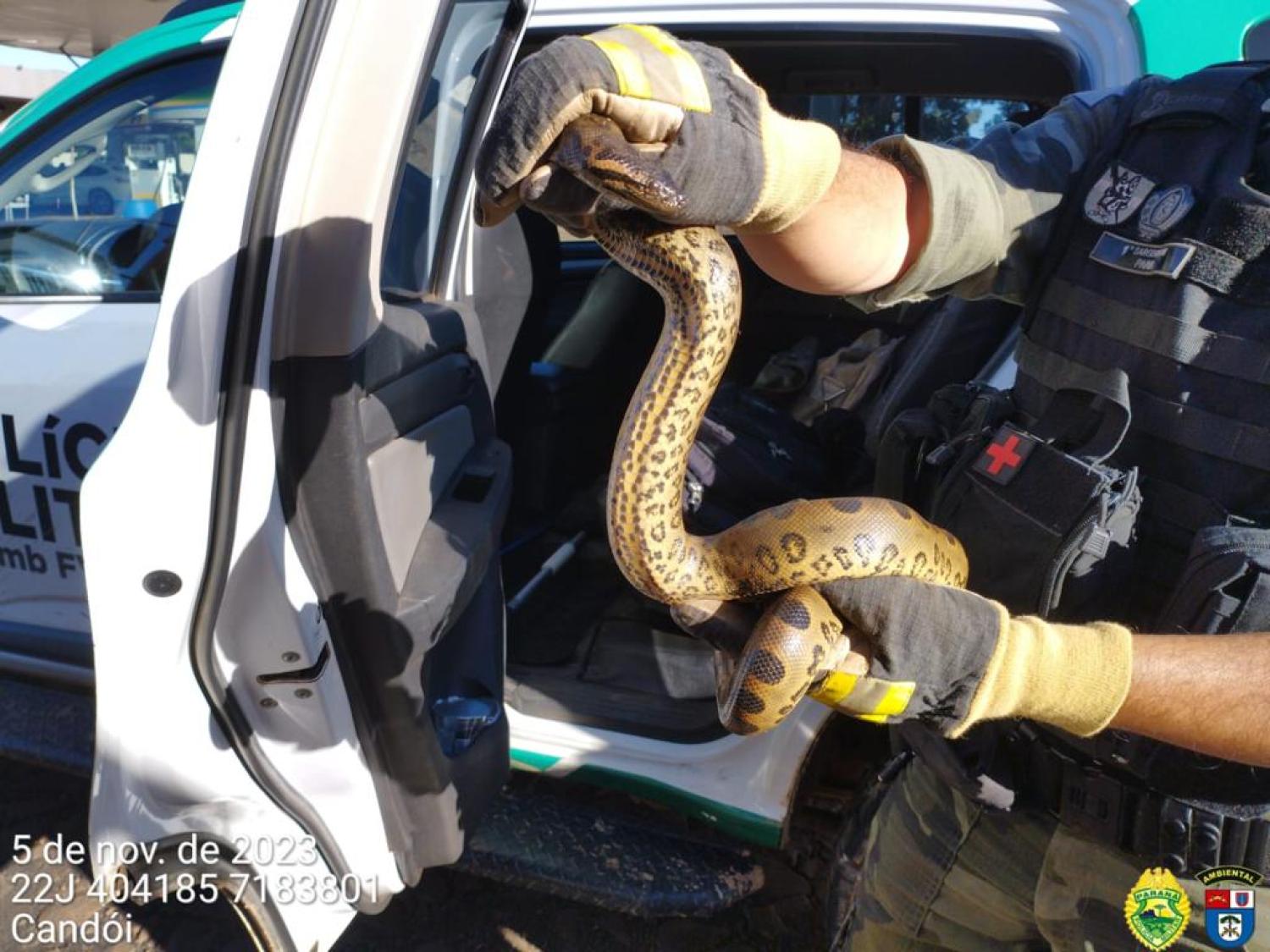 Na manhã desta terça feira, dia 07, à Defesa Civil do Município do Candói foi solicitada para captura de uma cobra da espécie Sucuri que se encontrava dentro de um veículo estacionado no pátio de um posto de combustível.