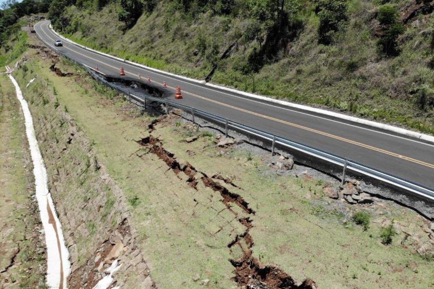 PR-092 em Rio Branco do Sul – Bloqueio total devido ao surgimento de rachaduras no pavimento na altura do km 48. DER/PR está estudando soluções para recuperar o trecho e melhorias a curto prazo para retomar a trafegabilidade.