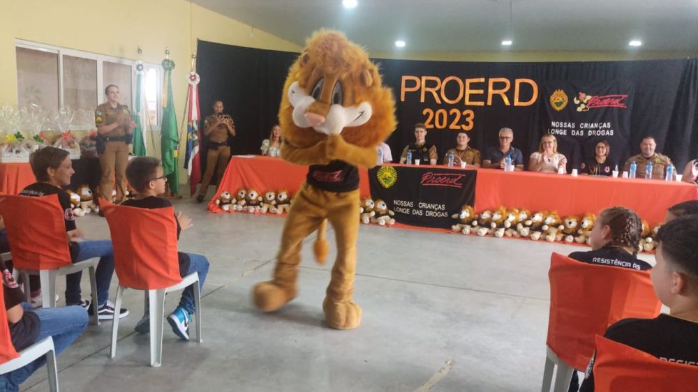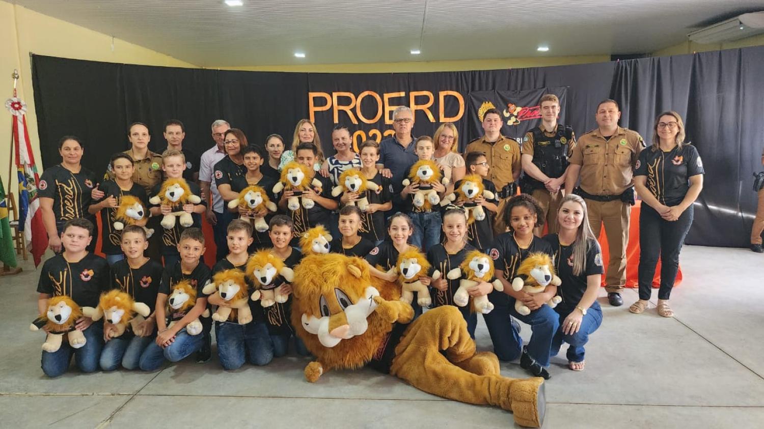 A formatura contou com a presença do DAREN, o mascote do PROERD, que juntamente com os instrutores 2°Sgt Claricéia, Cb Besson que junto com os demais policiais fizeram deste evento um momento especial para os formandos e seus familiares.