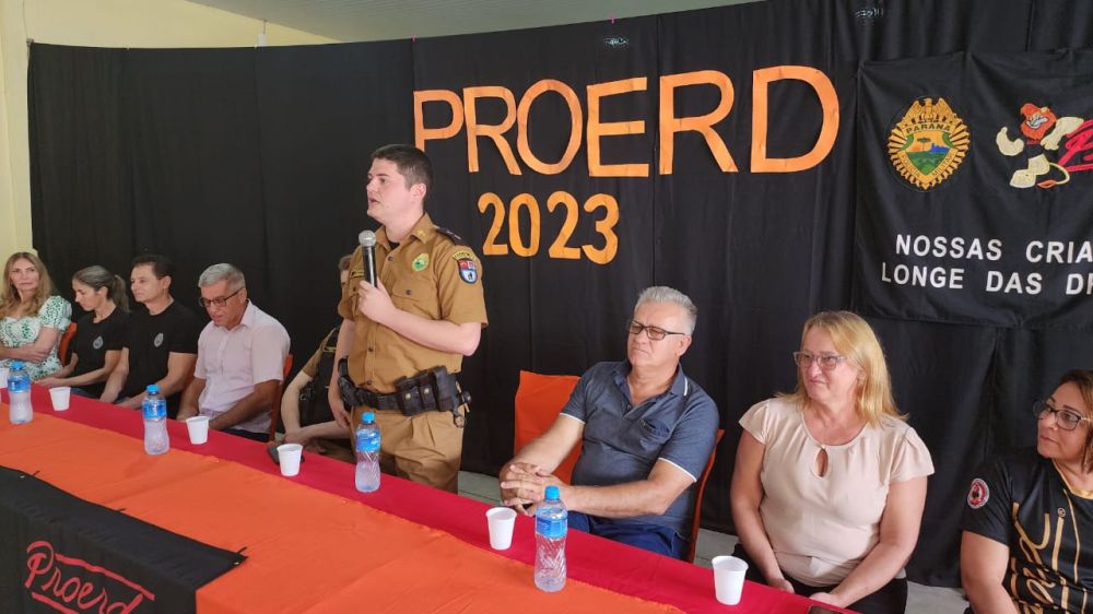 Na manhã desta terça feira, dia 05, o PROERD realizou a cerimônia de formatura de 35 alunos do 5° ano da Rede Pública de Ensino da escola Municipal Arnaldo Busato do município de Sulina.