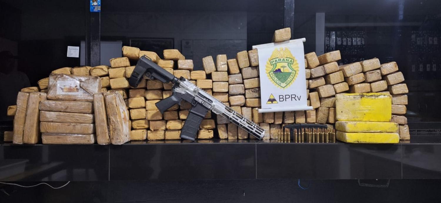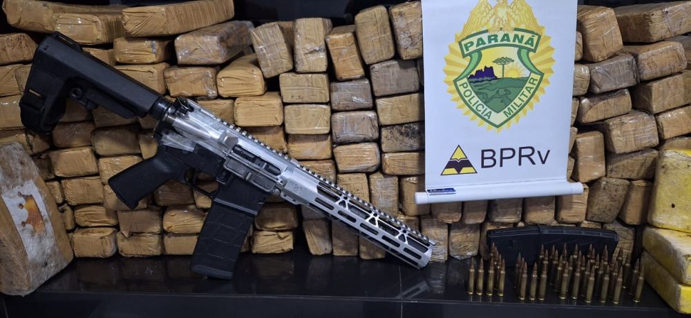 A apreensão aconteceu nas proximidades de Francisco Beltrão, no Sudoeste do Estado, no início da noite. A arma e as drogas estavam escondidas dentro do estepe de uma carreta do Paraguai, carregada com milho.