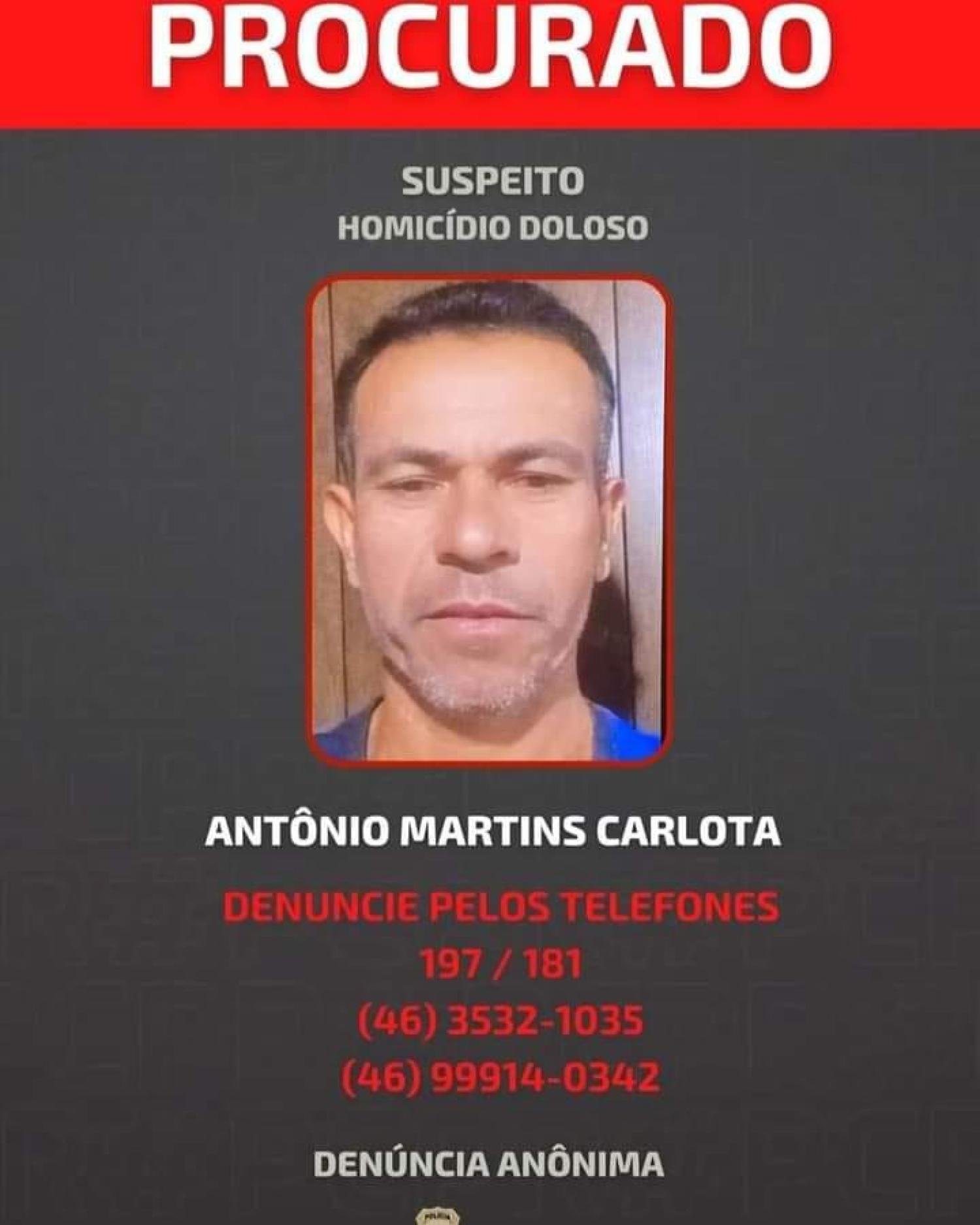 A Polícia Civil do Paraná (PCPR) divulgou a foto de um homem, de 50 anos, foragido por um homicídio ocorrido em Quedas do Iguaçu, no Oeste do Estado.